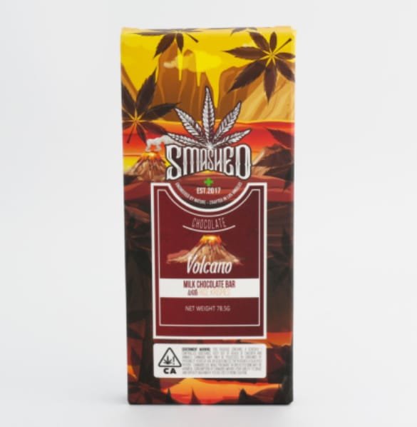 Smashed Chocolate Volcano 5000MG is a sweet and creamy chocolate smash candy bar with a touch of herbal flavor. The Smashed Chocolate Volcano 5000MG is a premium cannabis-infused edible featuring a rich chocolate flavor with a potent 5,000mg THC content. Divided into 10 pieces with 500mg THC each, this bar offers a bold and indulgent experience for seasoned users. Ideal for microdosing or sharing, it combines delectable taste with intense effects. Consume responsibly.